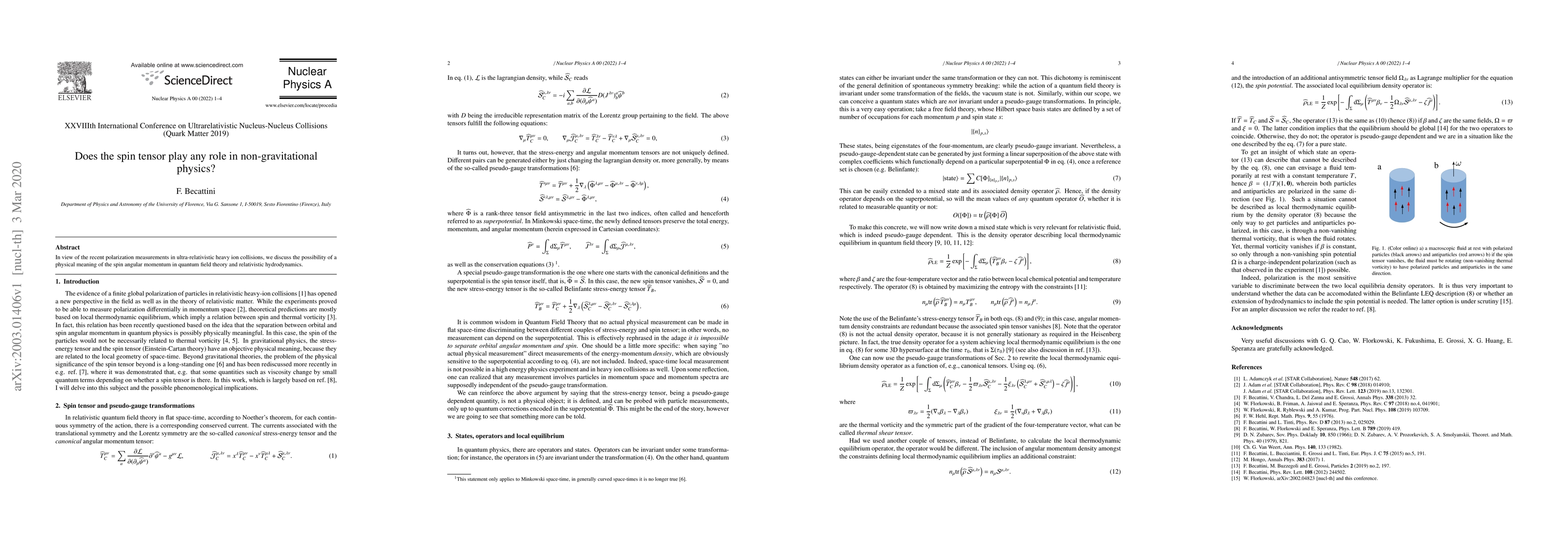 In view of the recent polarization measurements in ultra-relativistic heavy ion collisions, we discuss the possibility of a physical meaning of the spin angular momentum in quantum field theory and relativistic hydrodynamics.