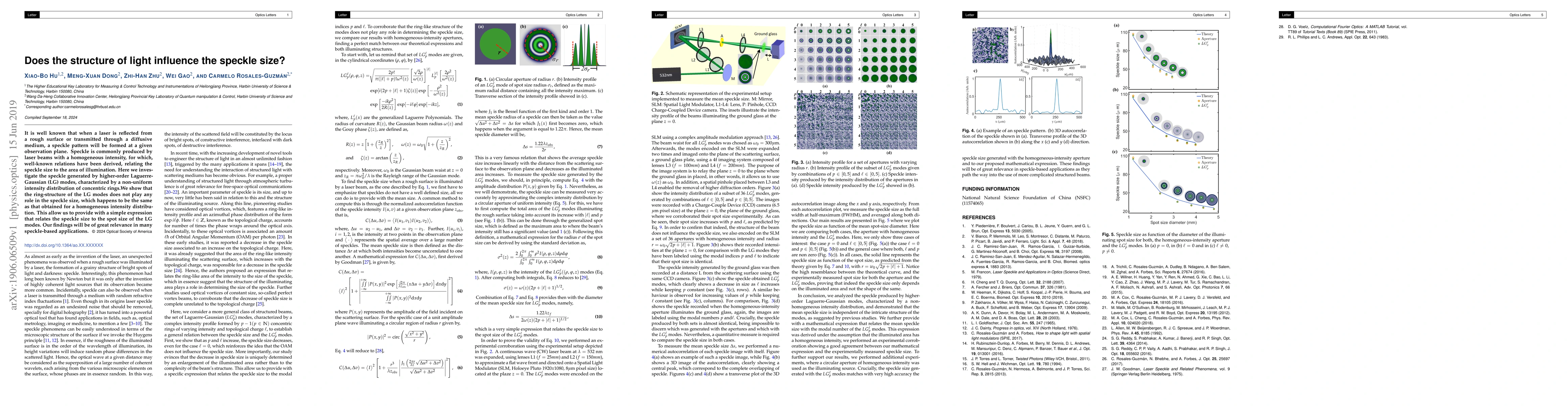 This research shows that the structure of higher-order Laguerre-Gaussian (LG) laser modes, with non-uniform intensity rings, does not affect speckle size, which remains equivalent to that of a homogeneous intensity distribution. A simple formula linking speckle size to LG mode spot size is provided, benefiting various speckle-based applications.