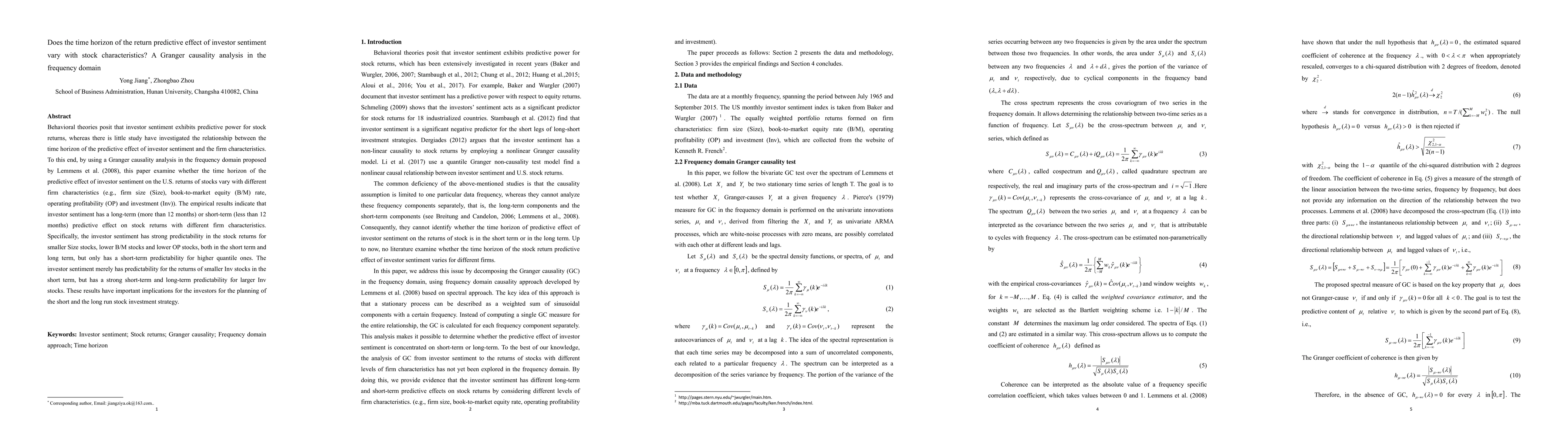 This paper investigates how the predictive effect of investor sentiment on stock returns varies with different firm characteristics using a Granger causality analysis in the frequency domain. Results show that investor sentiment has both short-term and long-term predictive power for returns of smaller, less profitable, and lower investment stocks, but only short-term for larger firms. These findings suggest tailored investment strategies based on firm characteristics.