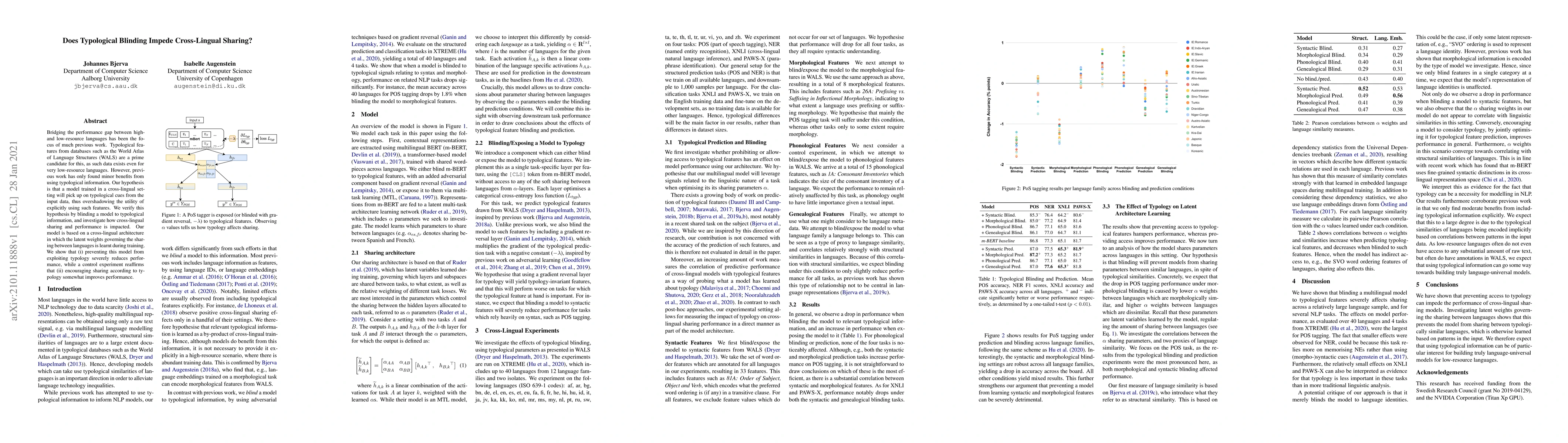 This paper investigates whether typological features impede cross-lingual language model performance. The study finds that a model trained without typological information performs worse, suggesting that typological cues are implicitly learned and beneficial for cross-lingual sharing.