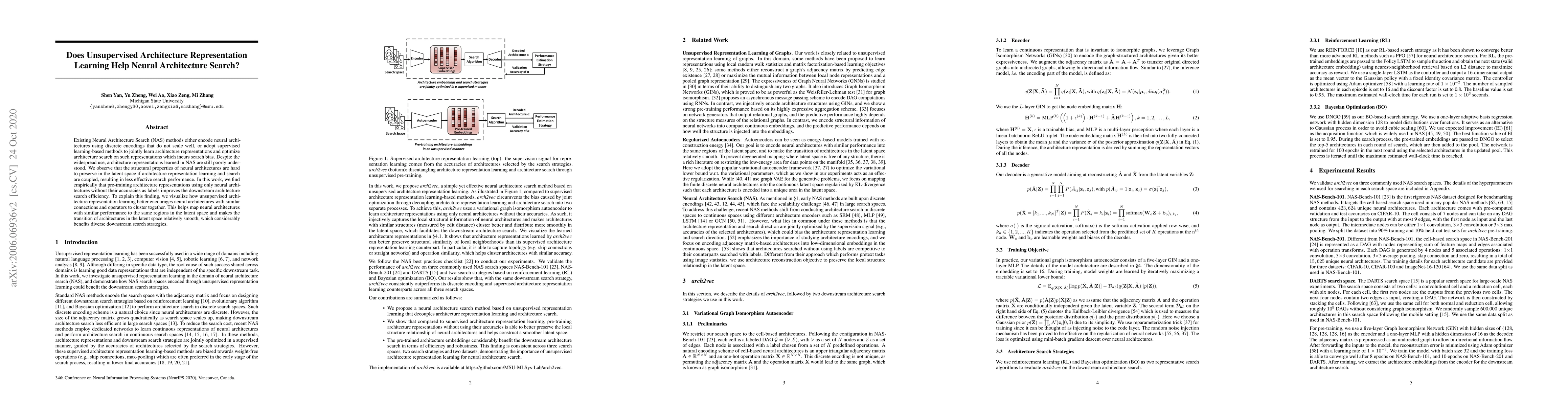 This paper explores whether unsupervised learning of neural architecture representations can enhance neural architecture search (NAS) efficiency. The study finds that pre-training architecture representations without using accuracy labels significantly improves NAS performance by clustering similar architectures together in the latent space, enabling smoother transitions and benefiting diverse search strategies.