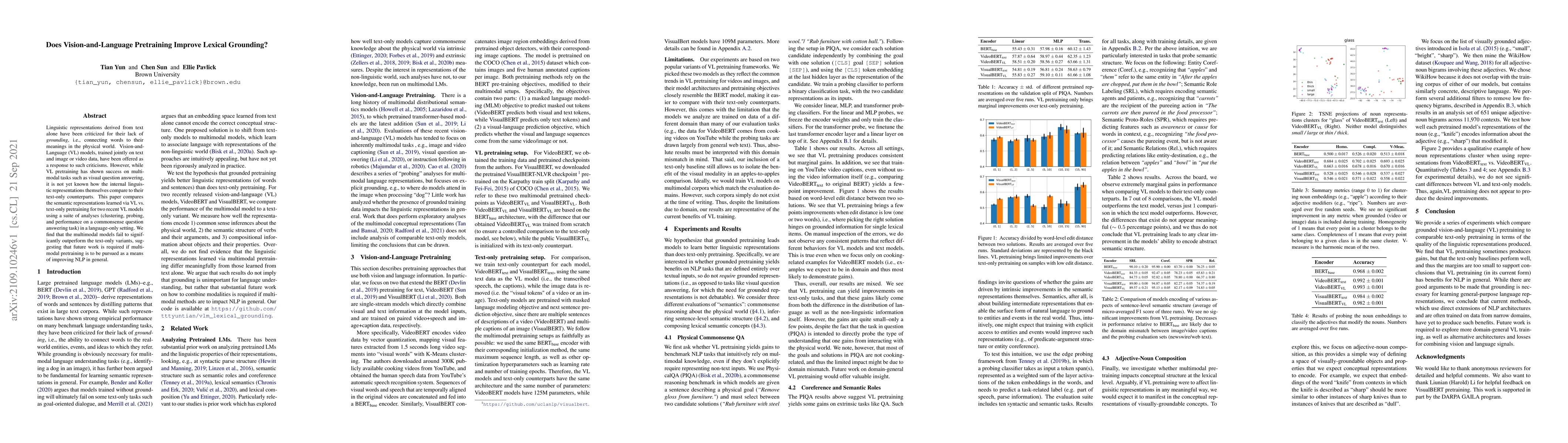 This paper investigates whether vision-and-language pretraining enhances lexical grounding compared to text-only pretraining, finding that multimodal models do not significantly outperform text-only models in semantic representation tasks, indicating further research is needed to improve NLP through multimodal approaches.