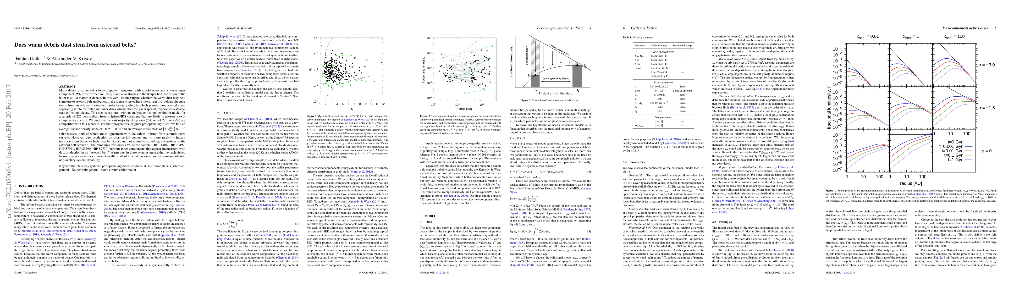 Most debris discs have a two-component structure, with most systems compatible with an asteroid belt origin, while five systems require alternative explanations.