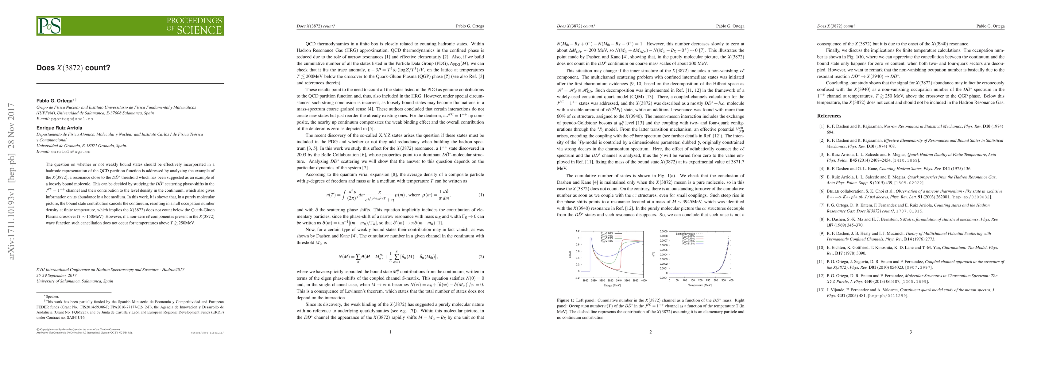 The question on whether or not weakly bound states should be effectively incorporated in a hadronic representation of the QCD partition function is addressed by analyzing the example of the $X(3872)$, a resonance close to the $D\bar D^*$ threshold which has been suggested as an example of a loosely bound molecule. This can be decided by studying the $D \bar D^*$ scattering phase-shifts in the $J^{PC}=1^{++}$ channel and their contribution to the level density in the continuum, which also gives information on its abundance in a hot medium. In this work, it is shown that, in a purely molecular picture, the bound state contribution cancels the continuum, resulting in a null occupation number density at finite temperature, which implies the $X(3872)$ does not count below the Quark-Gluon Plasma crossover ($T \sim 150$MeV). However, if a non-zero $c \bar c$ component is present in the $X(3872)$ wave function such cancellation does not occur for temperatures above $T\gtrsim 250$MeV.