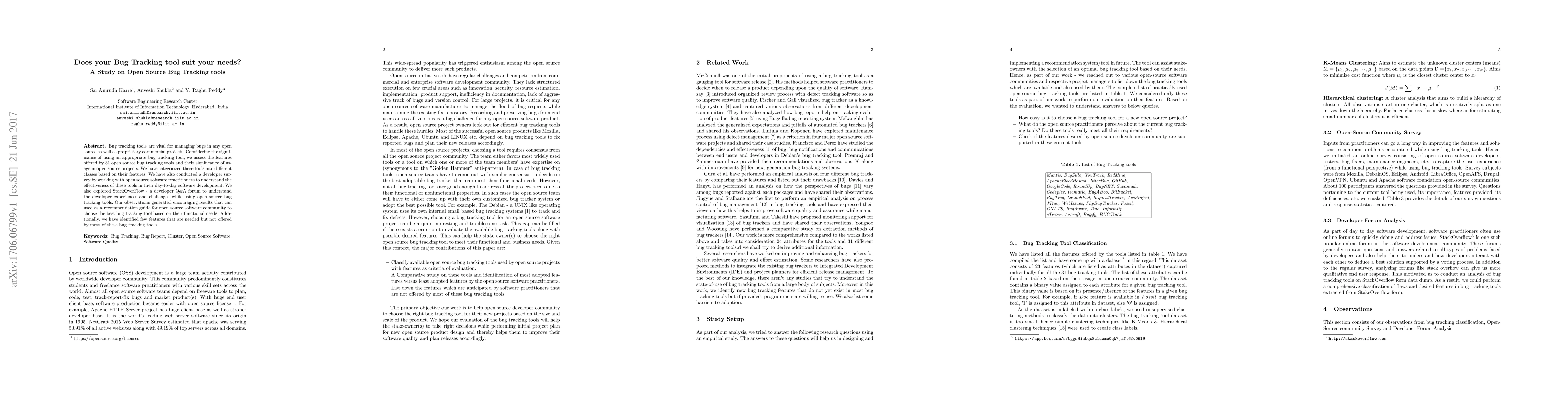 This study evaluates the features and usage of 31 open source bug tracking tools, assessing their effectiveness through developer surveys and StackOverflow insights. The findings provide a recommendation guide for the open source community to select tools based on their functional needs, while also highlighting missing features.