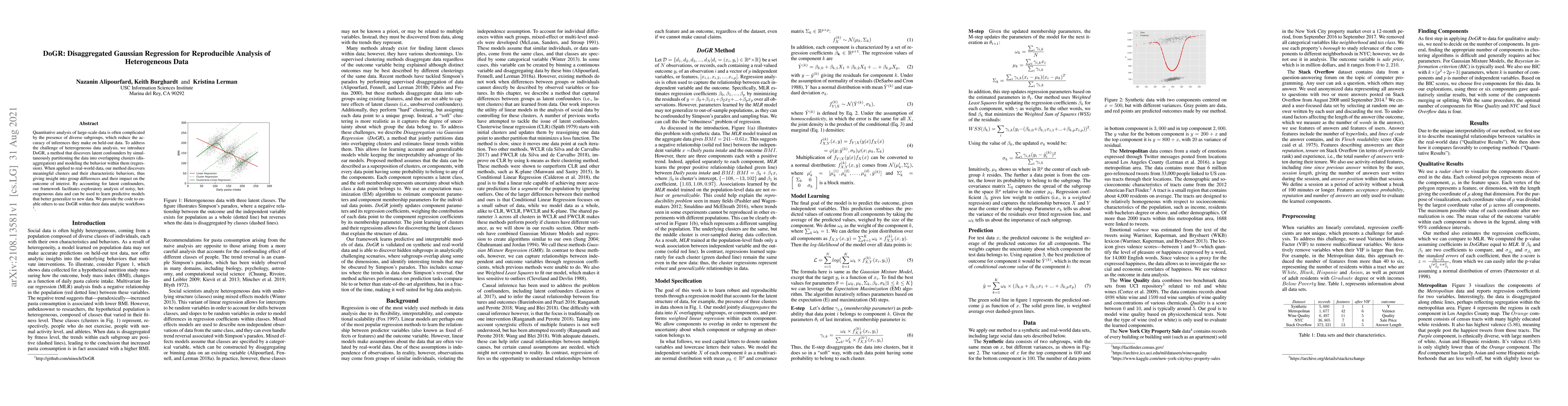 Quantitative analysis of large-scale data is often complicated by the presence of diverse subgroups, which reduce the accuracy of inferences they make on held-out data. To address the challenge of heterogeneous data analysis, we introduce DoGR, a method that discovers latent confounders by simultaneously partitioning the data into overlapping clusters (disaggregation) and modeling the behavior within them (regression). When applied to real-world data, our method discovers meaningful clusters and their characteristic behaviors, thus giving insight into group differences and their impact on the outcome of interest. By accounting for latent confounders, our framework facilitates exploratory analysis of noisy, heterogeneous data and can be used to learn predictive models that better generalize to new data. We provide the code to enable others to use DoGR within their data analytic workflows.