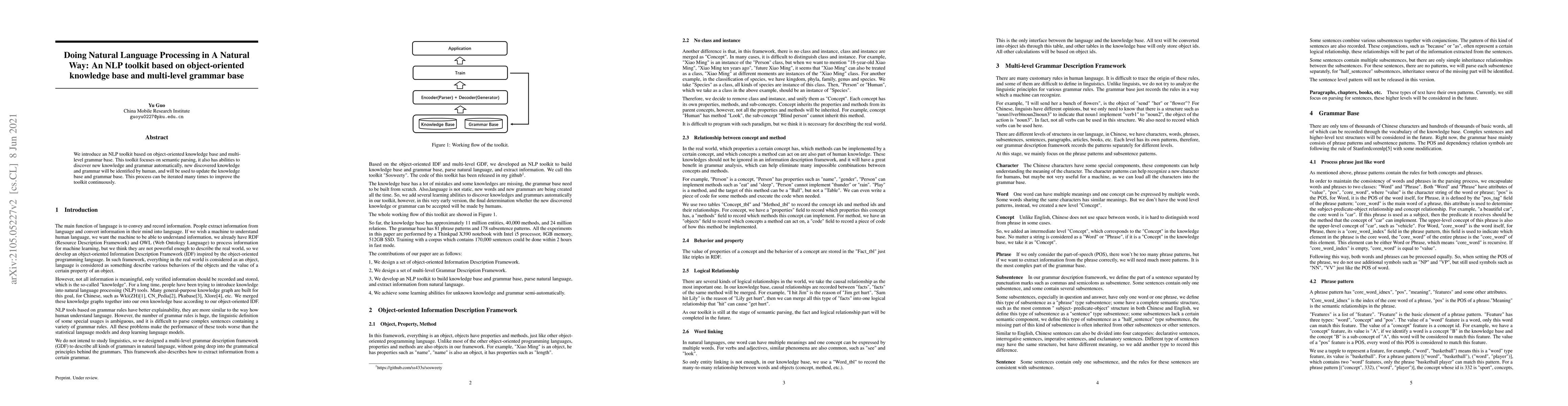 This paper presents an NLP toolkit leveraging an object-oriented knowledge base and multi-level grammar base for semantic parsing. It features automatic discovery and human-validated updates of new knowledge and grammar to iteratively enhance the toolkit.