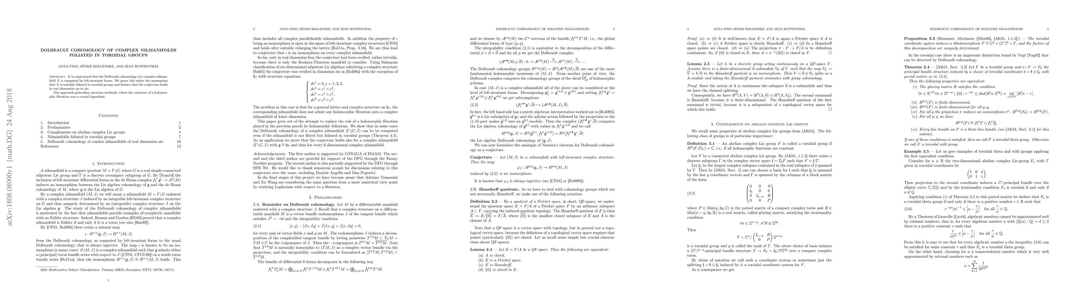 Researchers prove that the Dolbeault cohomology of complex nilmanifolds can be computed using left-invariant forms under suitable foliation conditions, extending previous methods and confirming a conjecture up to six dimensions.