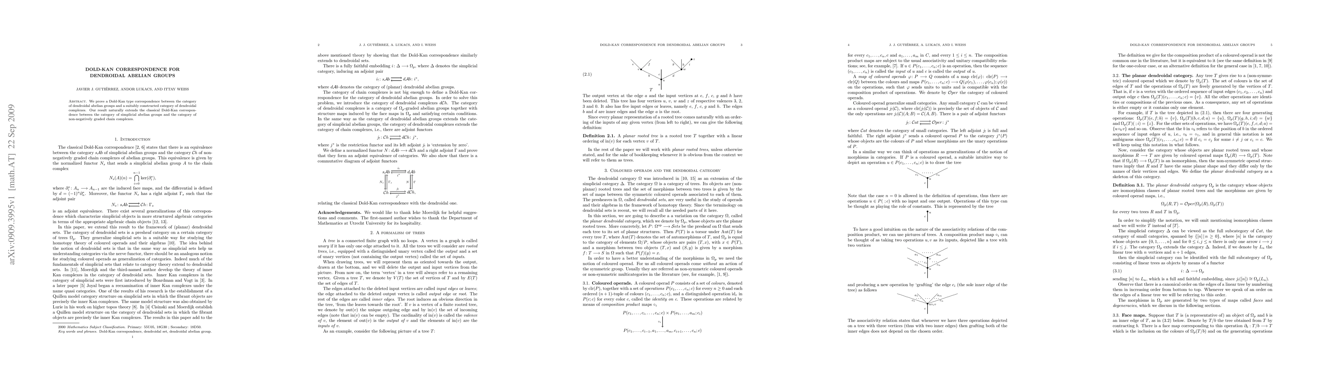 The paper establishes a Dold-Kan correspondence for dendroidal abelian groups, linking their category to a category of dendroidal complexes, extending the classical Dold-Kan correspondence from simplicial to dendroidal settings.