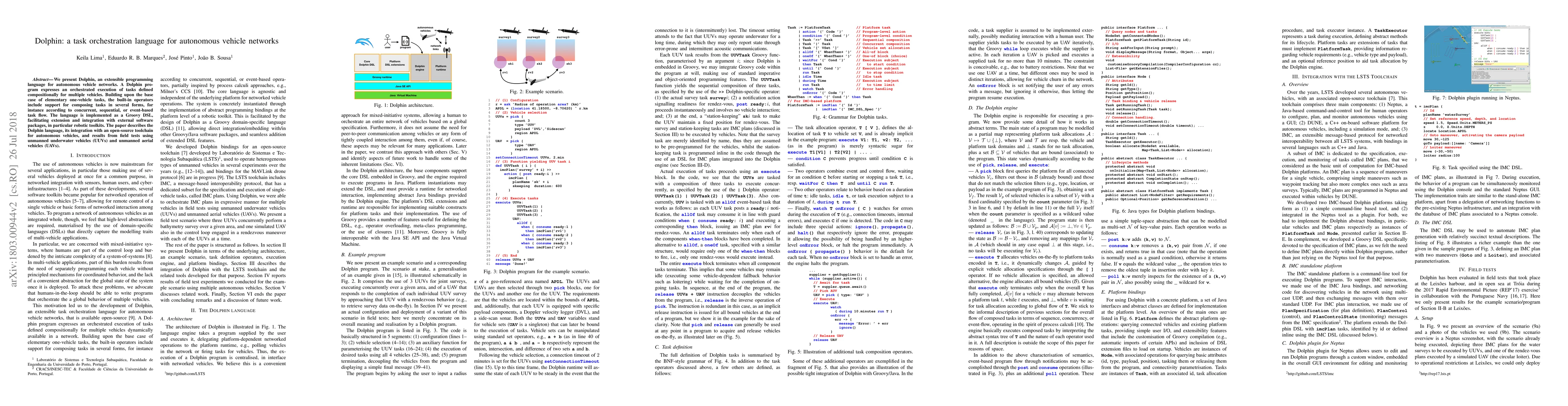 Dolphin is a programming language that enables autonomous vehicle networks to orchestrate tasks in various forms, such as concurrent, sequential, or event-based task flow, facilitating integration with robotic toolkits.