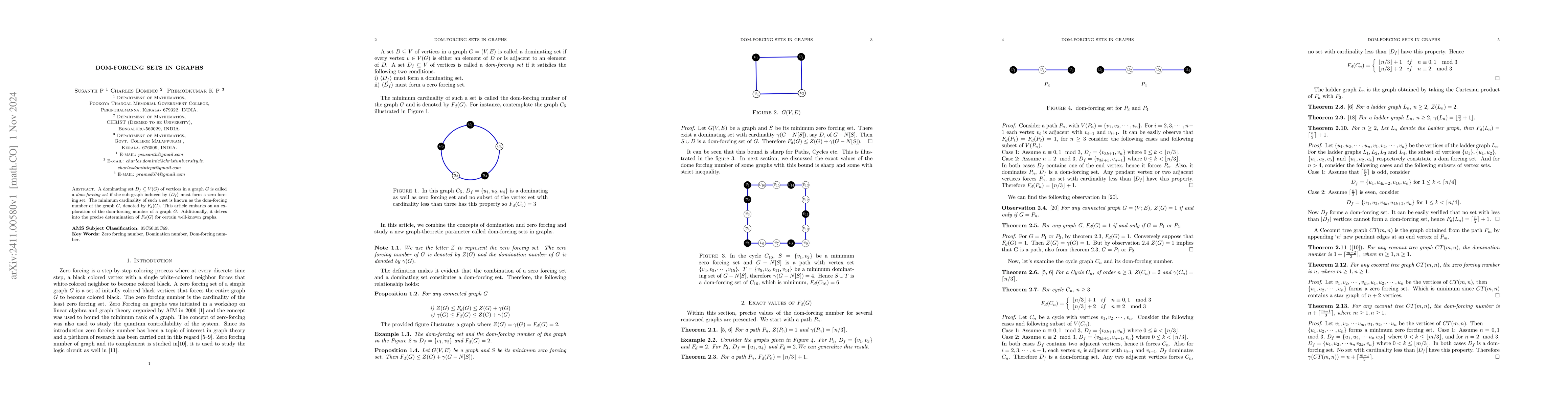 This paper investigates the concept of dom-forcing sets in graphs, where a dominating set induces a zero forcing set. It determines the dom-forcing number, $F_{d}(G)$, for specific well-known graphs and explores its implications.