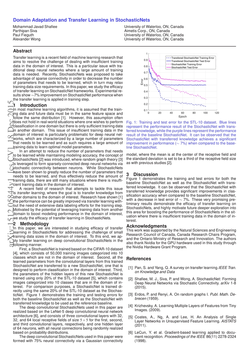 Transfer learning on StochasticNets frameworks shows a 7% improvement in performance when applied during training, suggesting its potential to reduce training data size requirements.