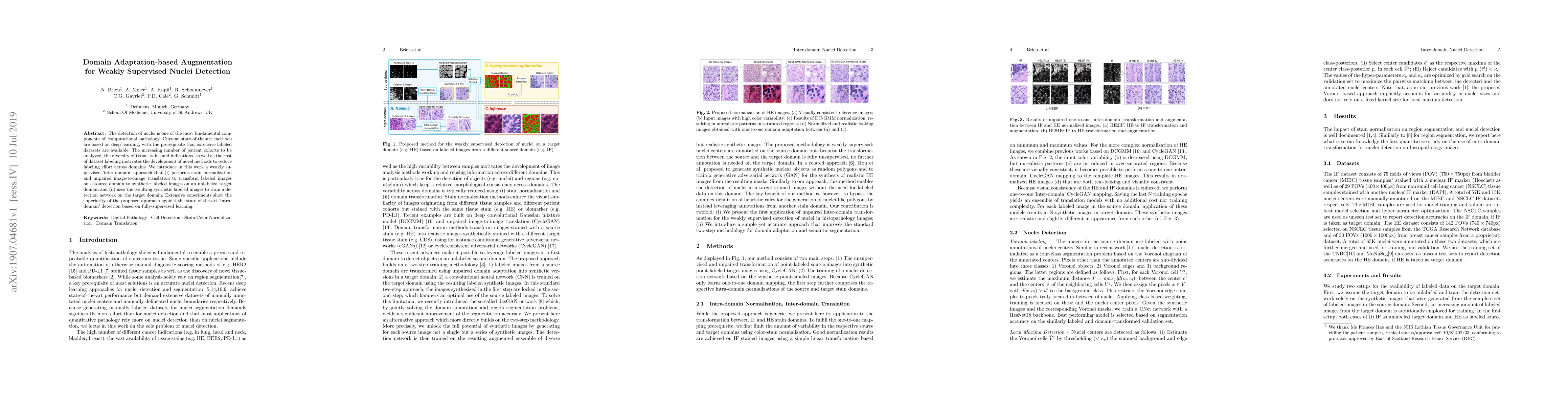 Researchers developed a method to label images for nucleus detection without extensive human labeling, using domain adaptation techniques to transform labeled images from one domain to another. The approach outperformed existing methods in detecting nuclei on target domains with limited labels.