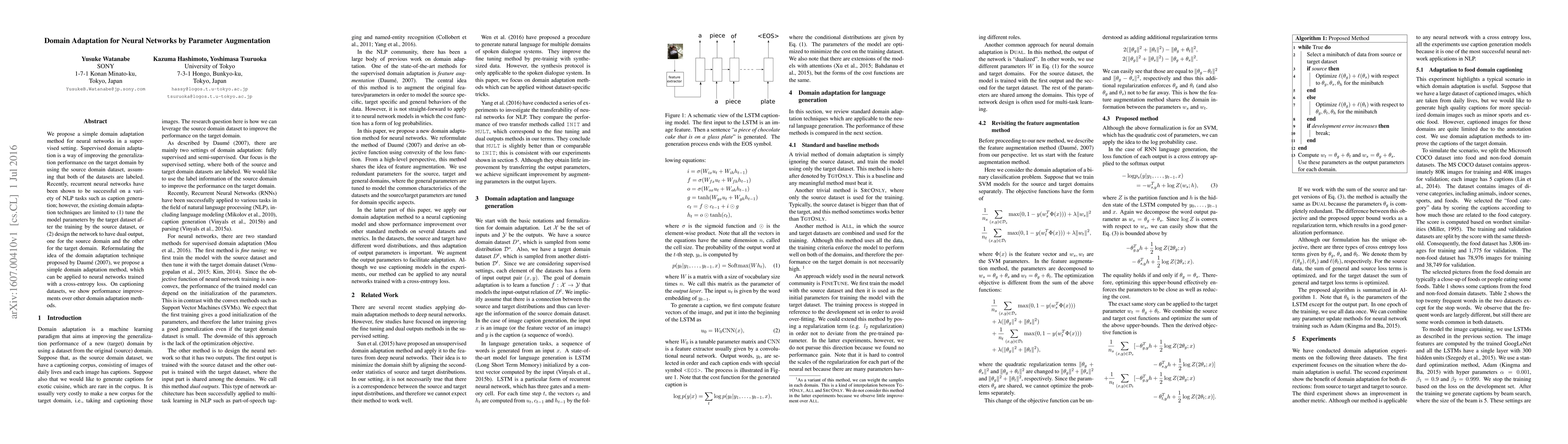 This paper proposes a simple domain adaptation method for neural networks that enhances generalization on target datasets by leveraging source domain data. The method augments model parameters during training, improving performance over existing techniques on caption generation tasks.