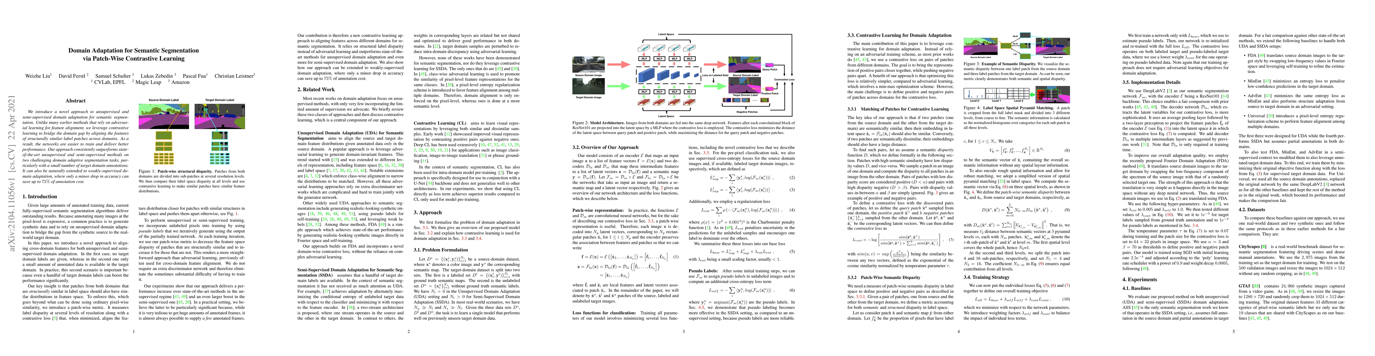 This paper proposes a patch-wise contrastive learning method for domain adaptation in semantic segmentation, achieving better performance without adversarial training. It outperforms state-of-the-art methods in both unsupervised and semi-supervised settings, and can significantly reduce annotation costs in weakly-supervised scenarios.