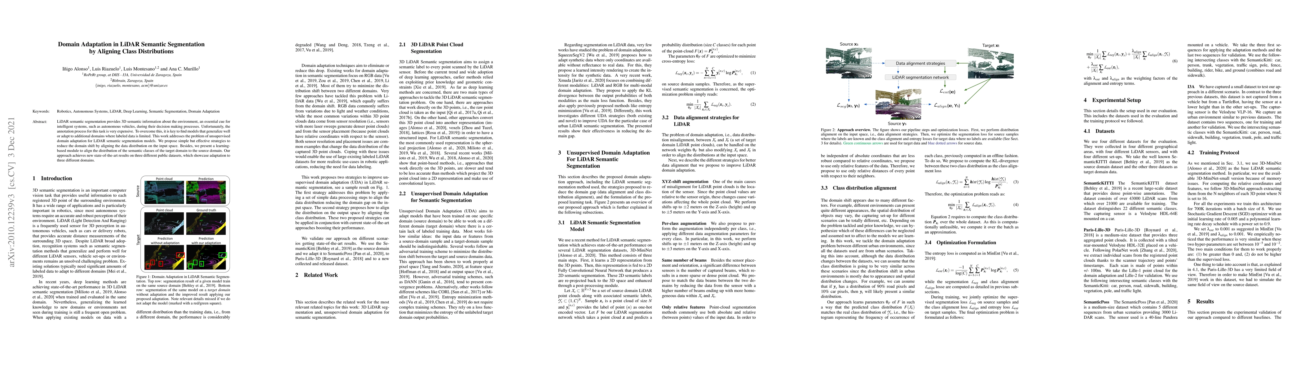 This paper proposes novel strategies for unsupervised domain adaptation in LiDAR semantic segmentation to address the challenge of data distribution shifts between domains. It aligns both the input space and the class distributions, achieving state-of-the-art results across three different domains.