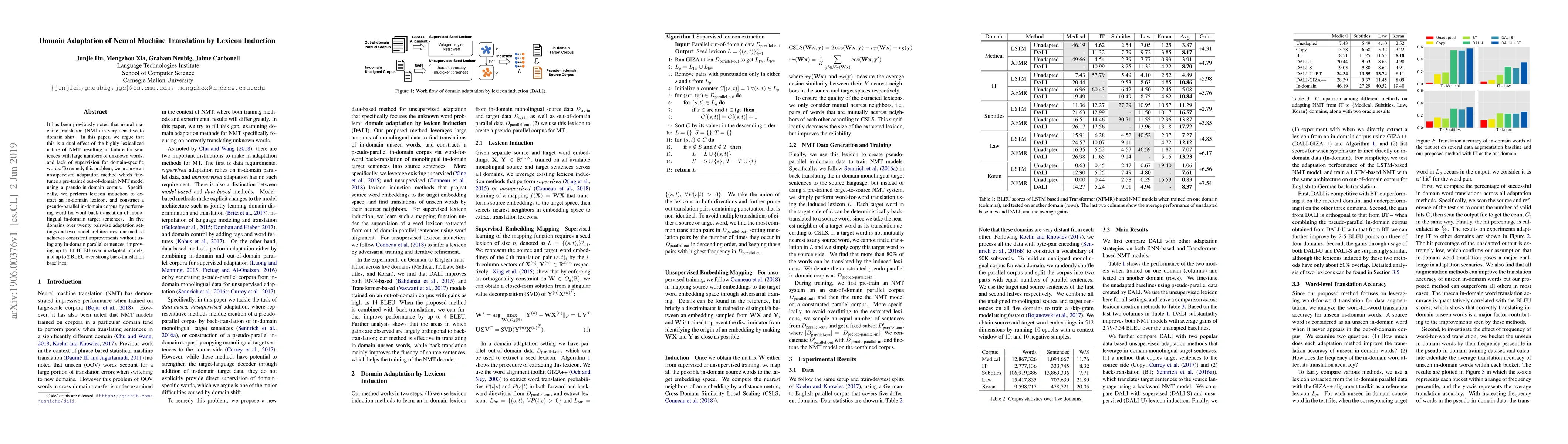 This paper proposes an unsupervised method for domain adaptation in neural machine translation (NMT) by inducing an in-domain lexicon and generating a pseudo-parallel corpus via back-translation, achieving significant improvements in translation quality across multiple domains.