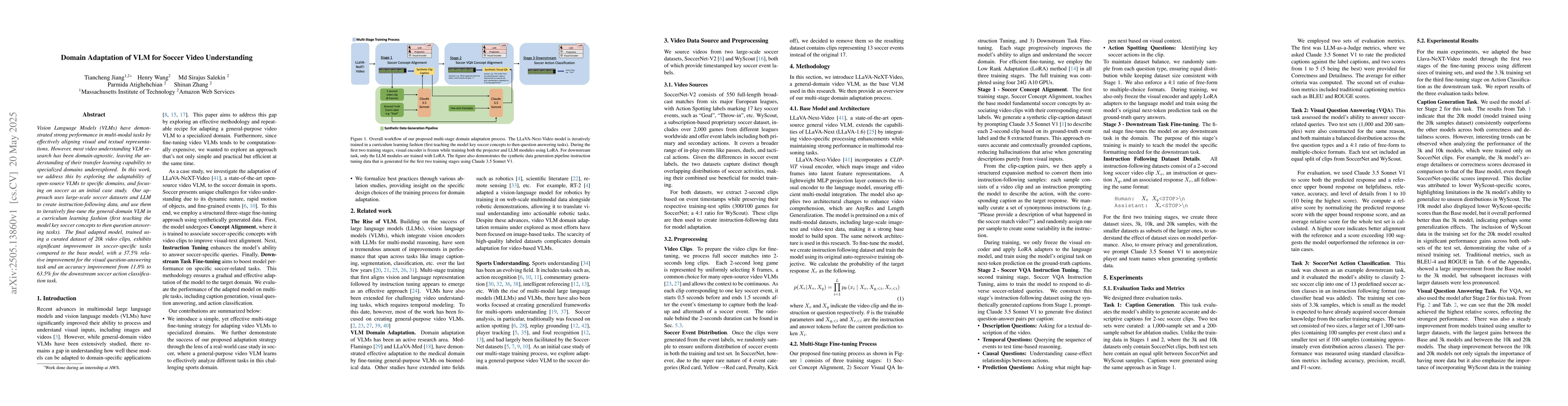 This research explores the transfer learning capability of VLMs to specialized domains like soccer, which is under-explored in existing literature, and demonstrates significant improvements in soccer-specific video understanding tasks.