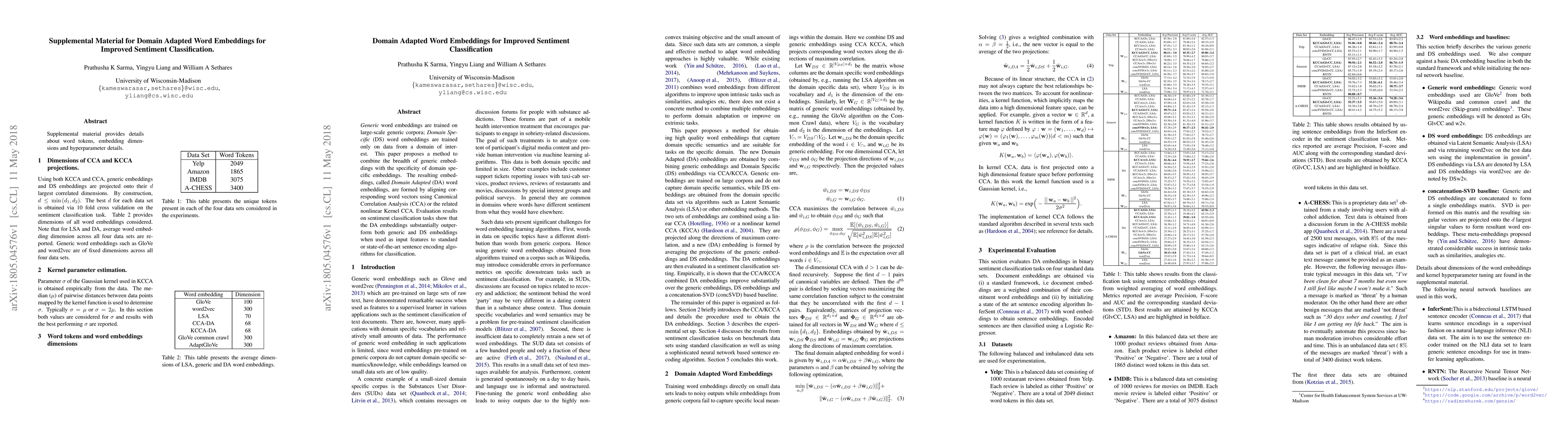 This paper proposes a method to create Domain Adapted word embeddings by combining generic and domain-specific embeddings, using Canonical Correlation Analysis or Kernel CCA for alignment, which significantly improve sentiment classification performance over both standalone types of embeddings.