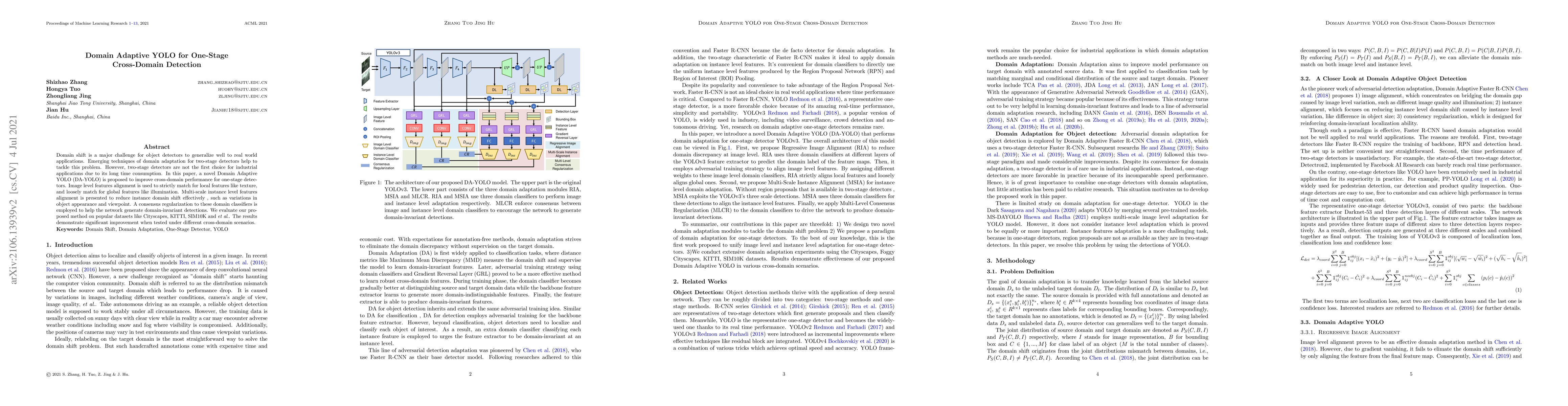 This paper proposes a novel Domain Adaptive YOLO (DA-YOLO) to enhance one-stage detectors' cross-domain performance by aligning image-level features and multi-scale instance-level features, along with consensus regularization to generate domain-invariant detections. Evaluations on datasets like Cityscapes and KITTI show significant improvements in cross-domain detection accuracy.
