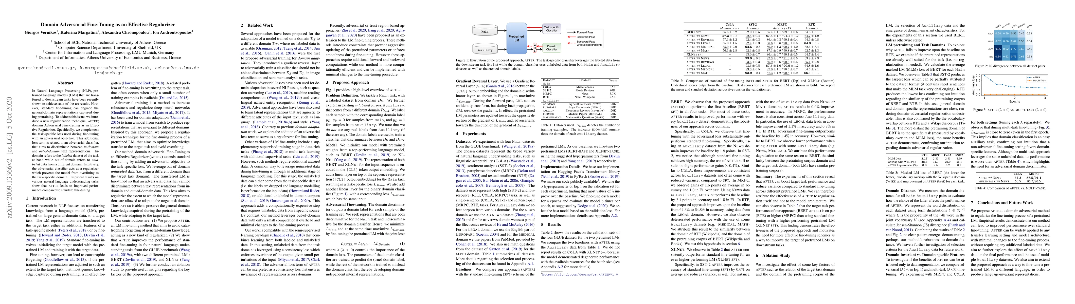 This paper introduces AFTER, a regularization technique for fine-tuning pretrained language models, which uses an adversarial objective to prevent overfitting to the task-specific domain. Empirical results demonstrate improved performance on various natural language understanding tasks compared to standard fine-tuning.