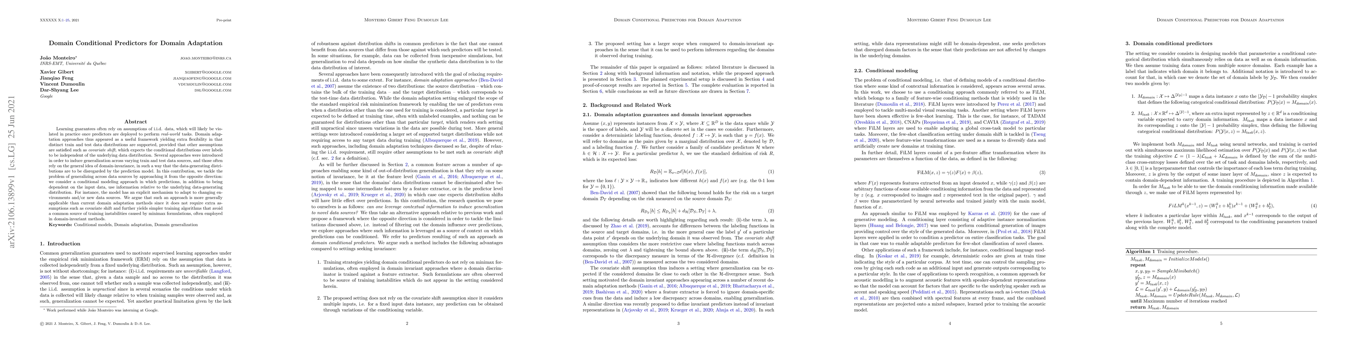 This paper proposes a new approach to domain adaptation that leverages conditional modeling to generalize across varying data sources, offering a more flexible and adaptable framework than existing methods.