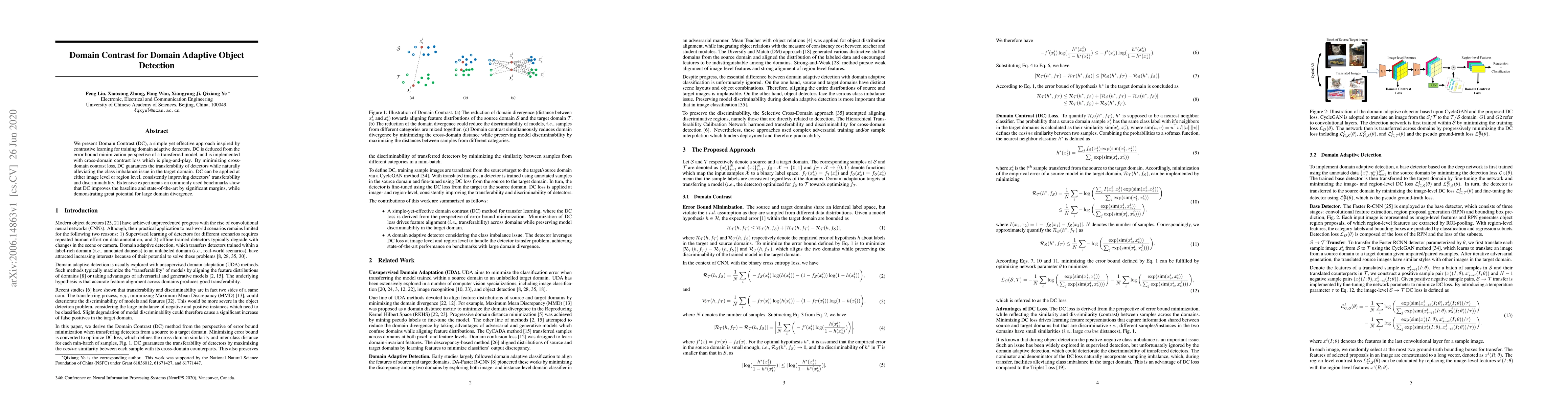 A new approach called Domain Contrast improves object detection accuracy across different domains by minimizing cross-domain contrast loss, improving detector transferability and discriminability.