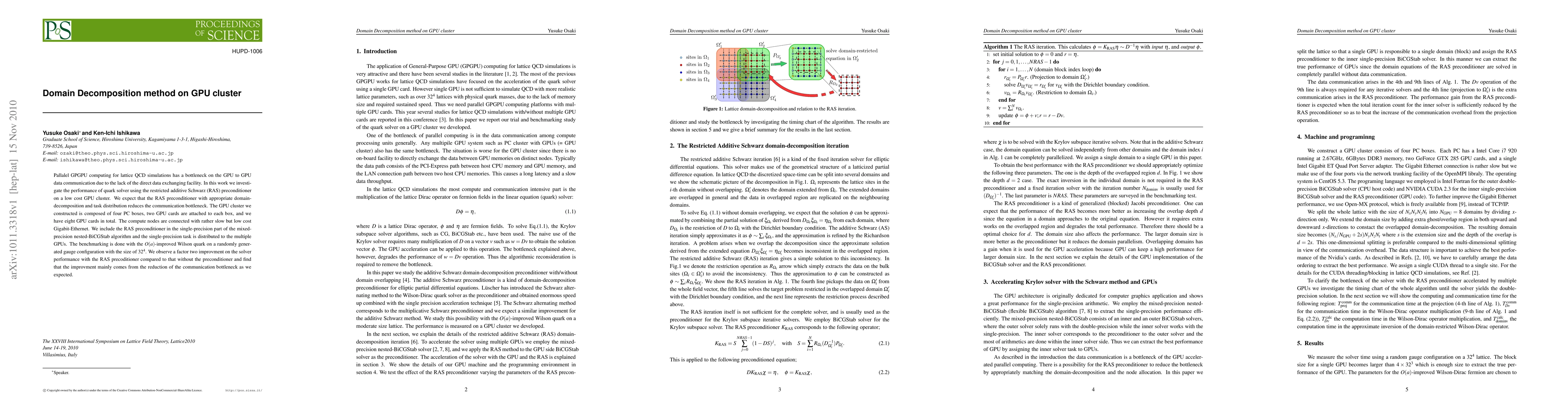 This paper investigates the use of a restricted additive Schwarz preconditioner on a GPU cluster to alleviate the communication bottleneck in lattice QCD simulations. The study shows a twofold performance improvement using the preconditioner, primarily due to reduced communication overhead.