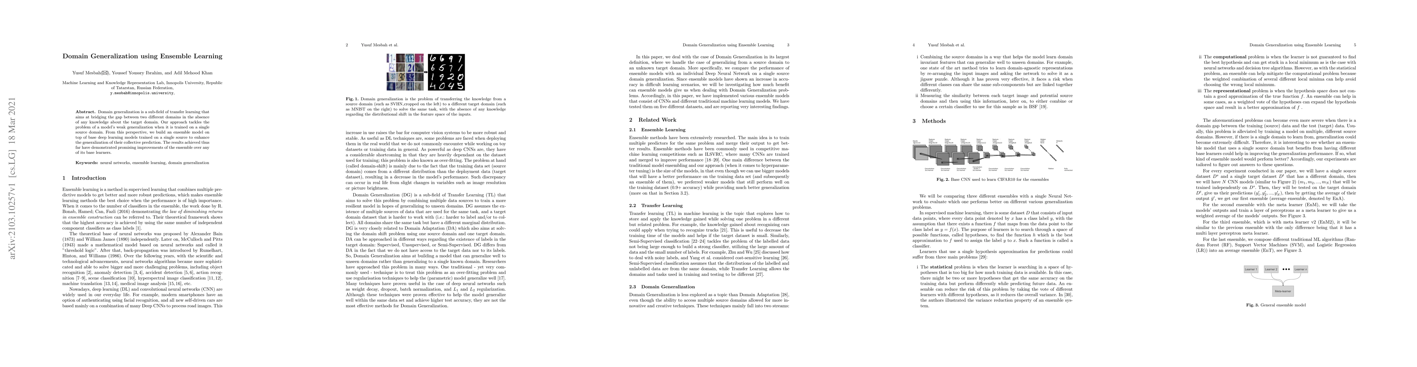 This research proposes an ensemble learning approach to improve domain generalization in transfer learning by combining predictions from multiple base models trained on a single source domain, achieving better generalization performance than any individual model. Initial results show promising enhancements in the ensemble's predictive accuracy.