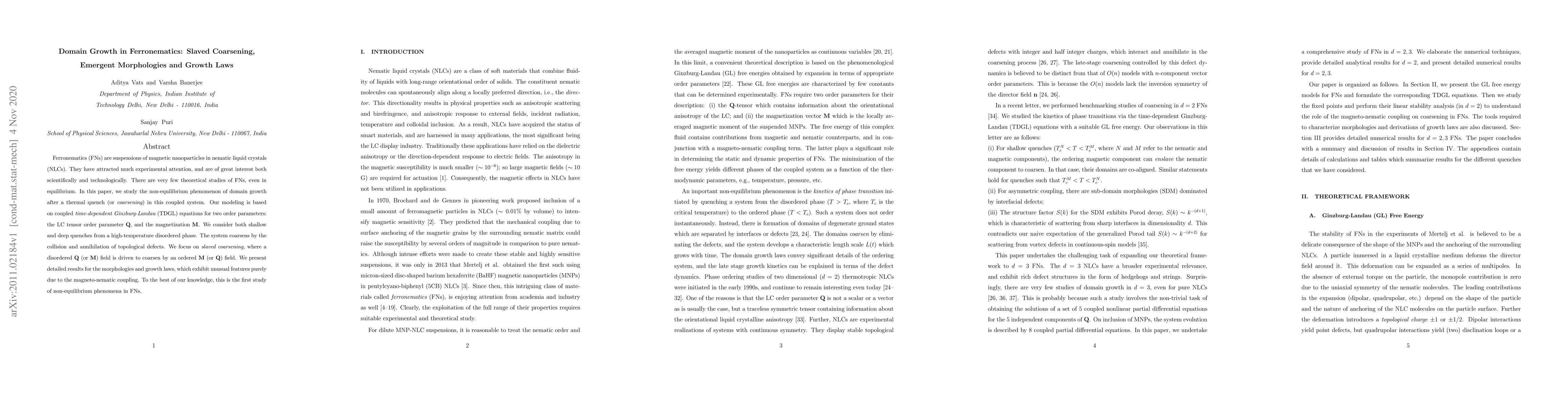 This study investigates non-equilibrium domain growth in ferronematics, magnetic nanoparticle-liquid crystal suspensions, using coupled time-dependent Ginzburg-Landau equations. It explores slaved coarsening, where a disordered field is driven by an ordered field, revealing unique morphologies and growth laws due to magneto-nematic coupling. This appears to be the first research on non-equilibrium phenomena in ferronematics.