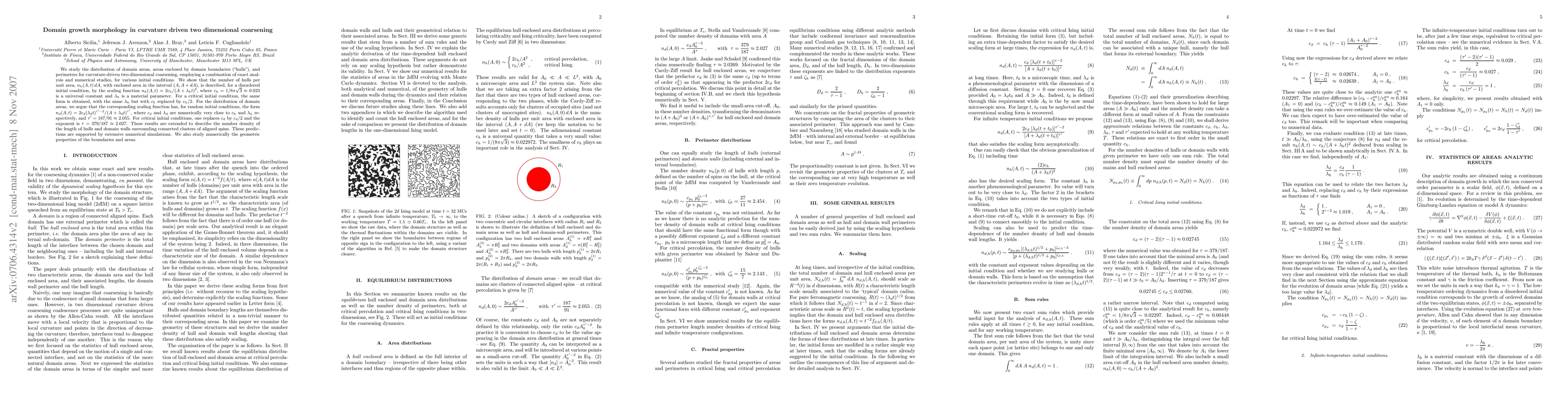 We study the distribution of domain areas, areas enclosed by domain boundaries (''hulls''), and perimeters for curvature-driven two-dimensional coarsening, employing a combination of exact analysis and numerical studies, for various initial conditions. We show that the number of hulls per unit area, $n_h(A,t) dA$, with enclosed area in the interval $(A,A+dA)$, is described, for a disordered initial condition, by the scaling function $n_h(A,t) = 2c_h/(A + \lambda_h t)^2$, where $c_h=1/8\pi\sqrt{3} \approx 0.023$ is a universal constant and $\lambda_h$ is a material parameter. For a critical initial condition, the same form is obtained, with the same $\lambda_h$ but with $c_h$ replaced by $c_h/2$. For the distribution of domain areas, we argue that the corresponding scaling function has, for random initial conditions, the form $n_d(A,t) = 2c_d (\lambda_d t)^{\tau'-2}/(A + \lambda_d t)^{\tau'}$, where $c_d=c_h + {\cal O}(c_h^2)$, $\lambda_d=\lambda_h + {\cal O}(c_h)$, and $\tau' = 187/91 \approx 2.055$. For critical initial conditions, one replaces $c_d$ by $c_d/2$ (possibly with corrections of ${\cal O}(c_h^2)$) and the exponent is $\tau = 379/187 \approx 2.027$. These results are extended to describe the number density of the length of hulls and domain walls surrounding connected clusters of aligned spins. These predictions are supported by extensive numerical simulations. We also study numerically the geometric properties of the boundaries and areas.