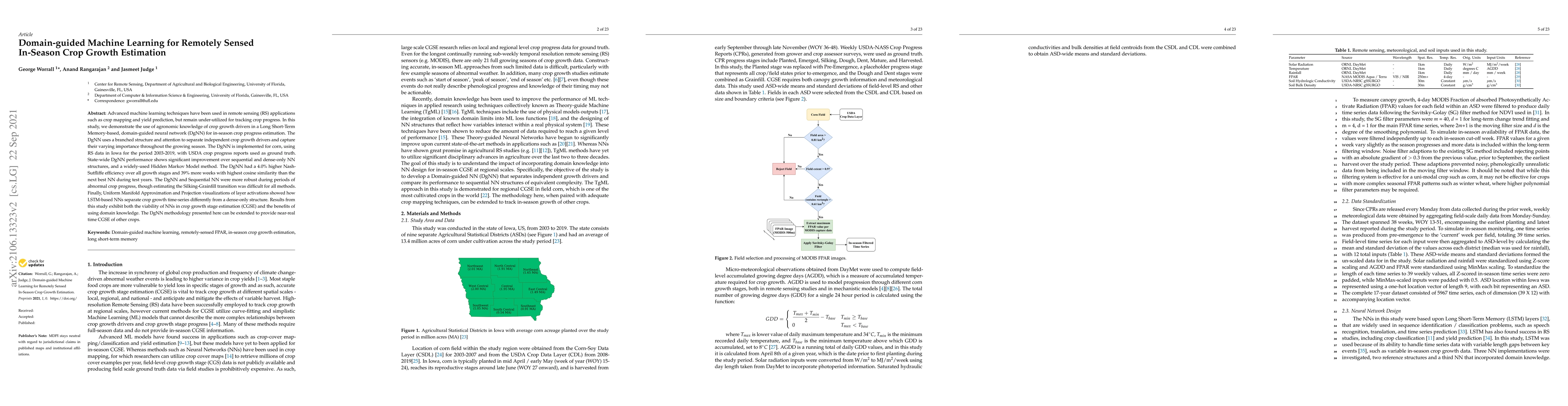This study introduces a domain-guided neural network (DgNN) leveraging agronomic knowledge to improve in-season crop growth estimation using remote sensing data. The DgNN, which employs a Long Short-Term Memory structure and attention mechanisms, significantly outperforms traditional methods in tracking corn growth stages in Iowa over 16 years.