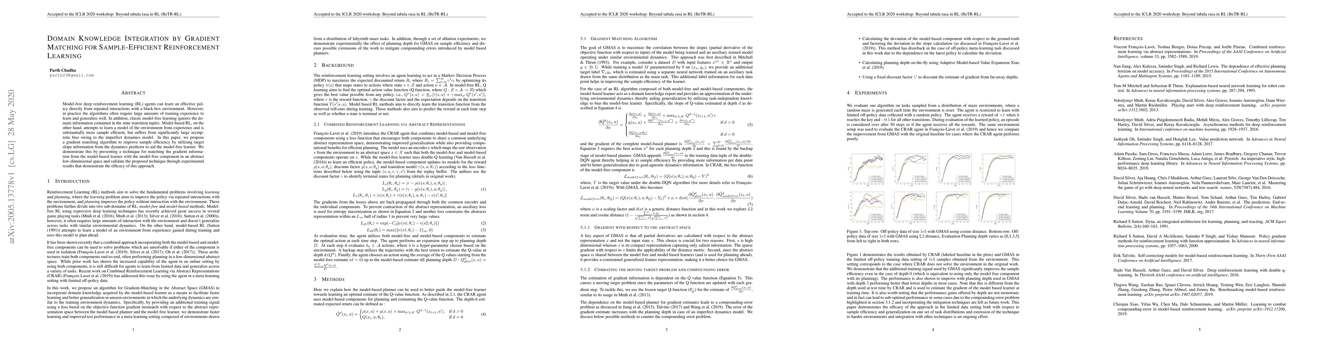 Model-free deep reinforcement learning (RL) agents can learn an effective policy directly from repeated interactions with a black-box environment. However in practice, the algorithms often require large amounts of training experience to learn and generalize well. In addition, classic model-free learning ignores the domain information contained in the state transition tuples. Model-based RL, on the other hand, attempts to learn a model of the environment from experience and is substantially more sample efficient, but suffers from significantly large asymptotic bias owing to the imperfect dynamics model. In this paper, we propose a gradient matching algorithm to improve sample efficiency by utilizing target slope information from the dynamics predictor to aid the model-free learner. We demonstrate this by presenting a technique for matching the gradient information from the model-based learner with the model-free component in an abstract low-dimensional space and validate the proposed technique through experimental results that demonstrate the efficacy of this approach.