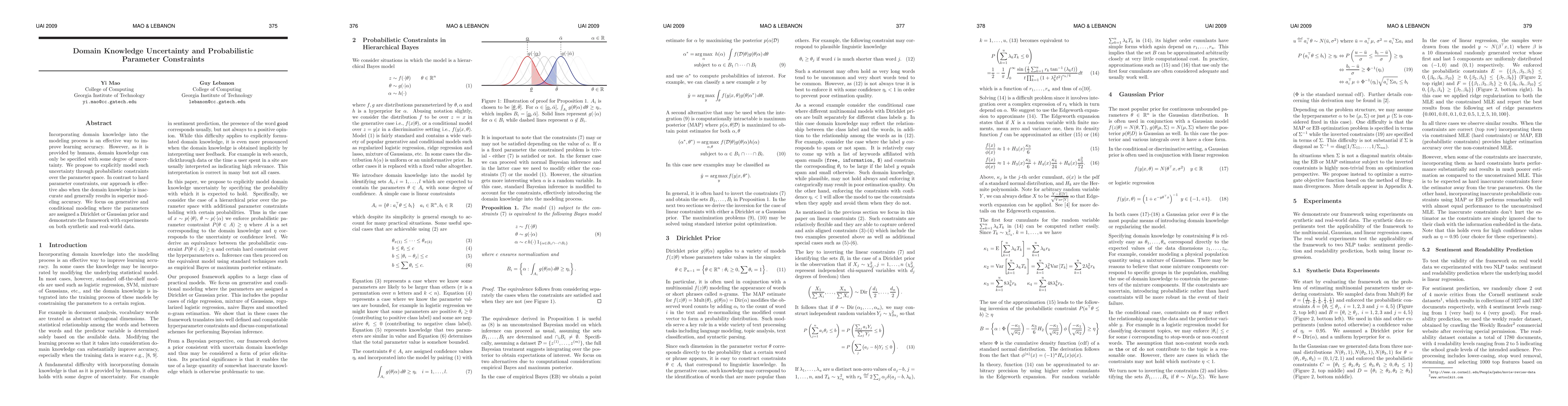 Incorporating domain knowledge into the modeling process is an effective way to improve learning accuracy. However, as it is provided by humans, domain knowledge can only be specified with some degree of uncertainty. We propose to explicitly model such uncertainty through probabilistic constraints over the parameter space. In contrast to hard parameter constraints, our approach is effective also when the domain knowledge is inaccurate and generally results in superior modeling accuracy. We focus on generative and conditional modeling where the parameters are assigned a Dirichlet or Gaussian prior and demonstrate the framework with experiments on both synthetic and real-world data.