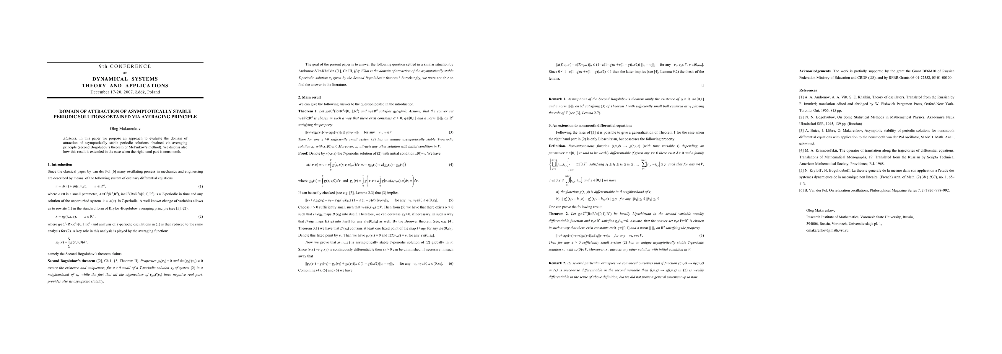 In this paper we propose an approach to evaluate the domain of attraction of asymptotically stable periodic solutions obtained via averaging principle (second Bogolubov's theorem or Mel'nikov's method). We discuss also how this result is extended in the case when the right hand part is nonsmooth.