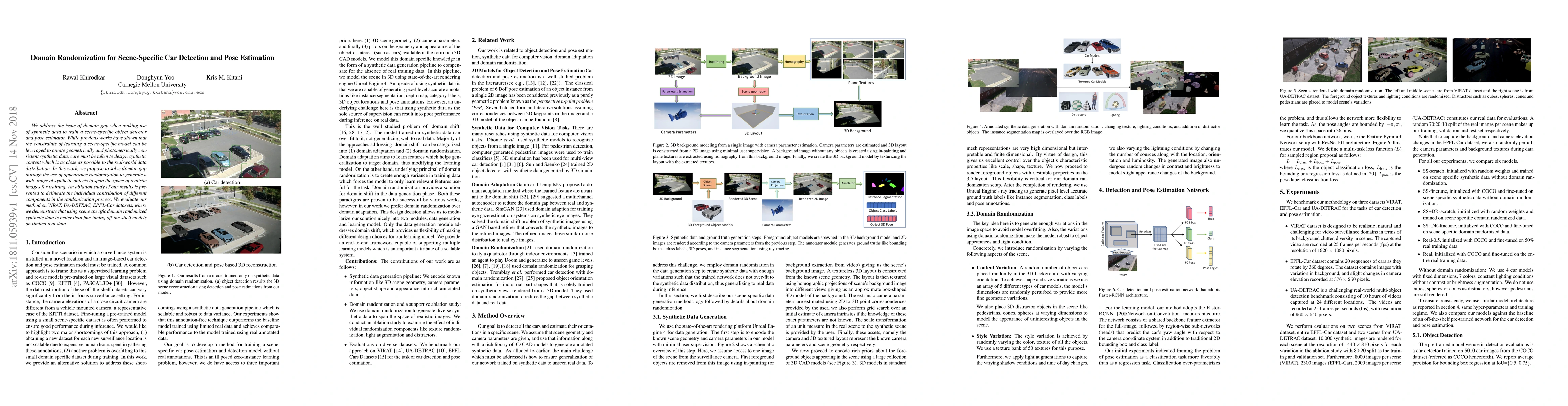 This paper proposes using domain randomization to bridge the domain gap in training scene-specific car detectors and pose estimators by generating synthetic data that mimics real-world variability. The study shows that this approach outperforms fine-tuning generic models on limited real data across multiple datasets.