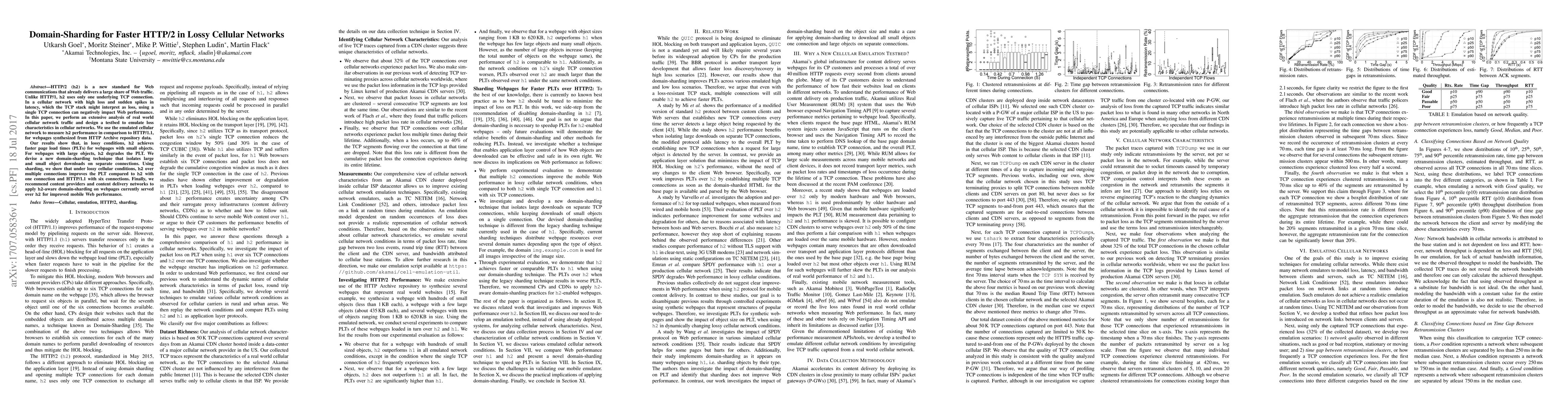 HTTP/2 (h2) is a new standard for Web communications that already delivers a large share of Web traffic. Unlike HTTP/1, h2 uses only one underlying TCP connection. In a cellular network with high loss and sudden spikes in latency, which the TCP stack might interpret as loss, using a single TCP connection can negatively impact Web performance. In this paper, we perform an extensive analysis of real world cellular network traffic and design a testbed to emulate loss characteristics in cellular networks. We use the emulated cellular network to measure h2 performance in comparison to HTTP/1.1, for webpages synthesized from HTTP Archive repository data. Our results show that, in lossy conditions, h2 achieves faster page load times (PLTs) for webpages with small objects. For webpages with large objects, h2 degrades the PLT. We devise a new domain-sharding technique that isolates large and small object downloads on separate connections. Using sharding, we show that under lossy cellular conditions, h2 over multiple connections improves the PLT compared to h2 with one connection and HTTP/1.1 with six connections. Finally, we recommend content providers and content delivery networks to apply h2-aware domain-sharding on webpages currently served over h2 for improved mobile Web performance.