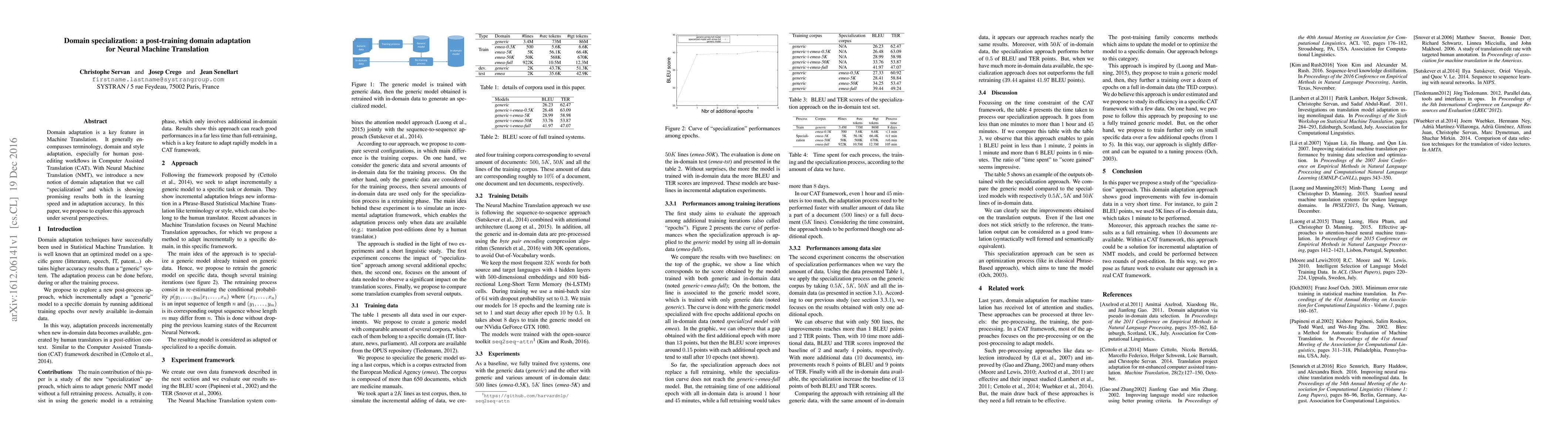 This paper introduces "specialization" as a novel post-training domain adaptation method for Neural Machine Translation, demonstrating improved learning speed and adaptation accuracy. The research explores this new approach from multiple perspectives to enhance terminology, domain, and style adaptation in human post-editing workflows.