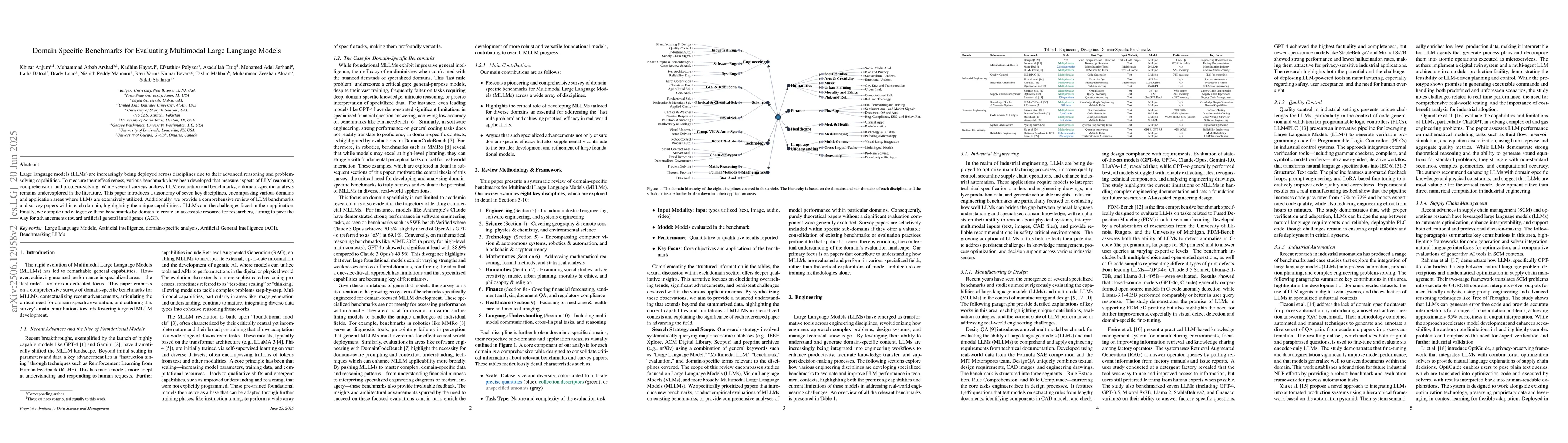 The paper introduces a taxonomy of seven key disciplines, reviews existing LLM benchmarks, and categorizes them by domain to create a resource for researchers.