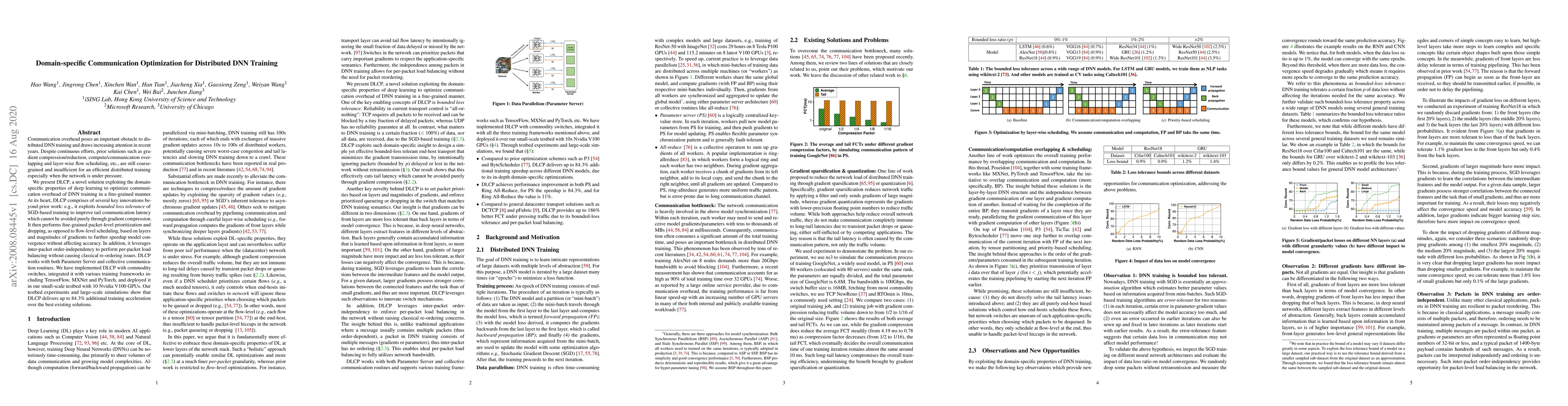 The paper introduces DLCP, a fine-grained communication optimization solution for distributed DNN training that leverages domain-specific properties to reduce overhead. DLCP employs bounded loss tolerance, packet-level prioritization, and per-packet load balancing to significantly accelerate training while maintaining accuracy.