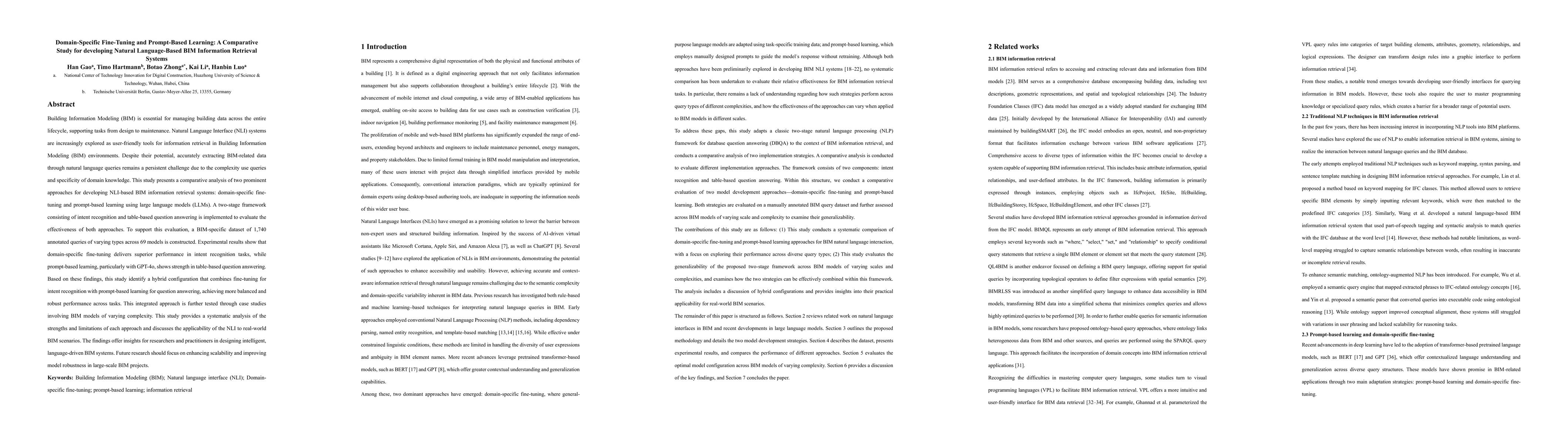 Building Information Modeling (BIM) is essential for managing building data across the entire lifecycle, supporting tasks from design to maintenance. Natural Language Interface (NLI) systems are increasingly explored as user-friendly tools for information retrieval in Building Information Modeling (BIM) environments. Despite their potential, accurately extracting BIM-related data through natural language queries remains a persistent challenge due to the complexity use queries and specificity of domain knowledge. This study presents a comparative analysis of two prominent approaches for developing NLI-based BIM information retrieval systems: domain-specific fine-tuning and prompt-based learning using large language models (LLMs). A two-stage framework consisting of intent recognition and table-based question answering is implemented to evaluate the effectiveness of both approaches. To support this evaluation, a BIM-specific dataset of 1,740 annotated queries of varying types across 69 models is constructed. Experimental results show that domain-specific fine-tuning delivers superior performance in intent recognition tasks, while prompt-based learning, particularly with GPT-4o, shows strength in table-based question answering. Based on these findings, this study identify a hybrid configuration that combines fine-tuning for intent recognition with prompt-based learning for question answering, achieving more balanced and robust performance across tasks. This integrated approach is further tested through case studies involving BIM models of varying complexity. This study provides a systematic analysis of the strengths and limitations of each approach and discusses the applicability of the NLI to real-world BIM scenarios. The findings offer insights for researchers and practitioners in designing intelligent, language-driven BIM systems.