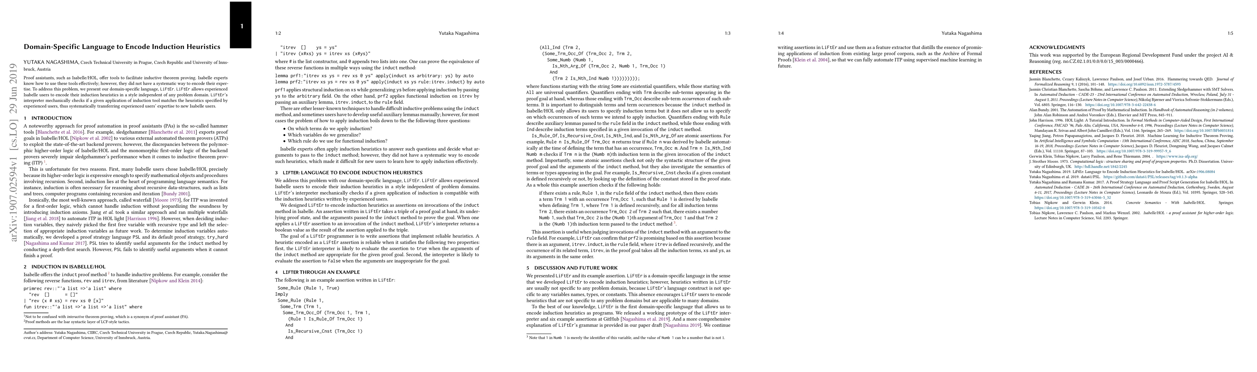 This paper introduces LiFtEr, a domain-specific language designed to encode induction heuristics for use in Isabelle/HOL proof assistants, enabling experienced users to share their expertise systematically with novices through a style-independent encoding method. The LiFtEr interpreter verifies the correctness of induction applications based on encoded heuristics.