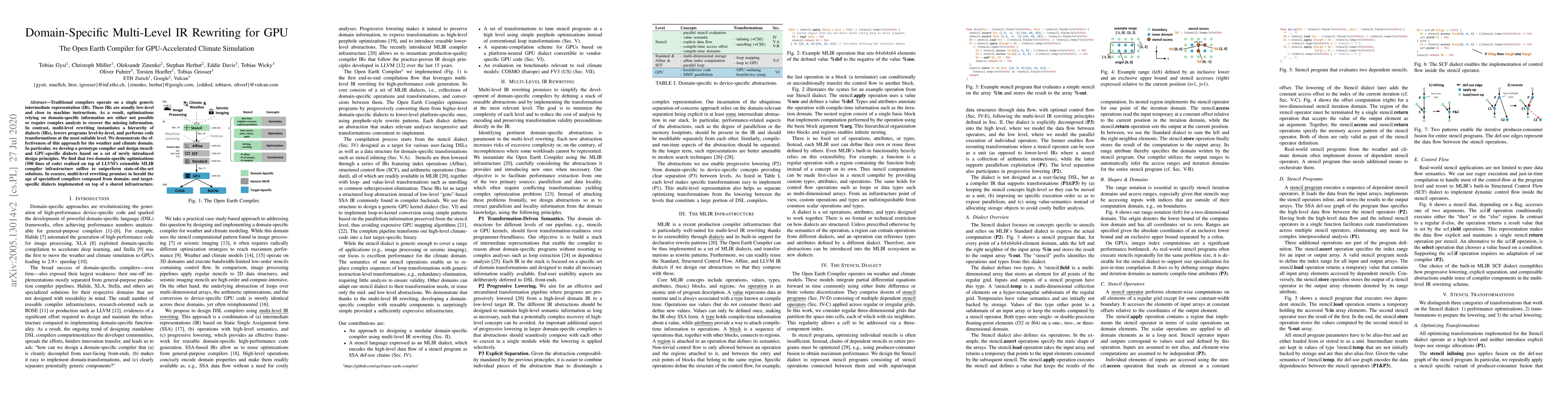 This paper proposes a multi-level intermediate representation (IR) rewriting approach for GPU optimization, demonstrating its effectiveness in the weather and climate domain. By developing domain-specific dialects and utilizing LLVM's MLIR infrastructure, the authors achieve significant performance improvements over state-of-the-art solutions.