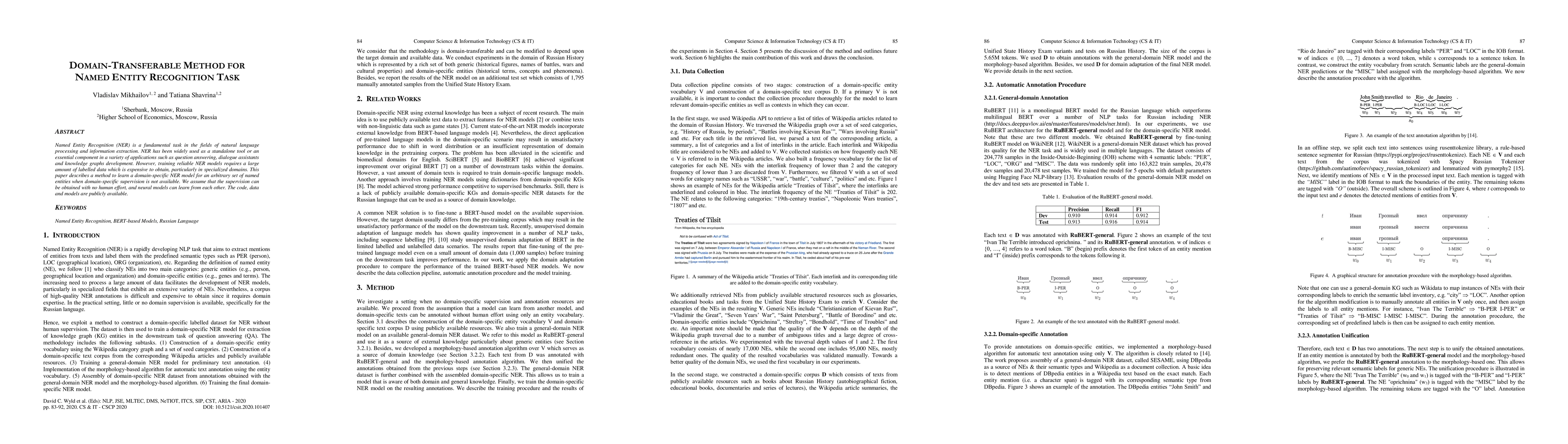 The paper presents a domain-transferable method for Named Entity Recognition (NER) using a semi-supervised approach. It involves automatically annotating a document collection with pre-processing tools and a domain-specific entity vocabulary constructed from scratch. Pre-trained language models are employed to train a NER model that incorporates both external and domain knowledge.
