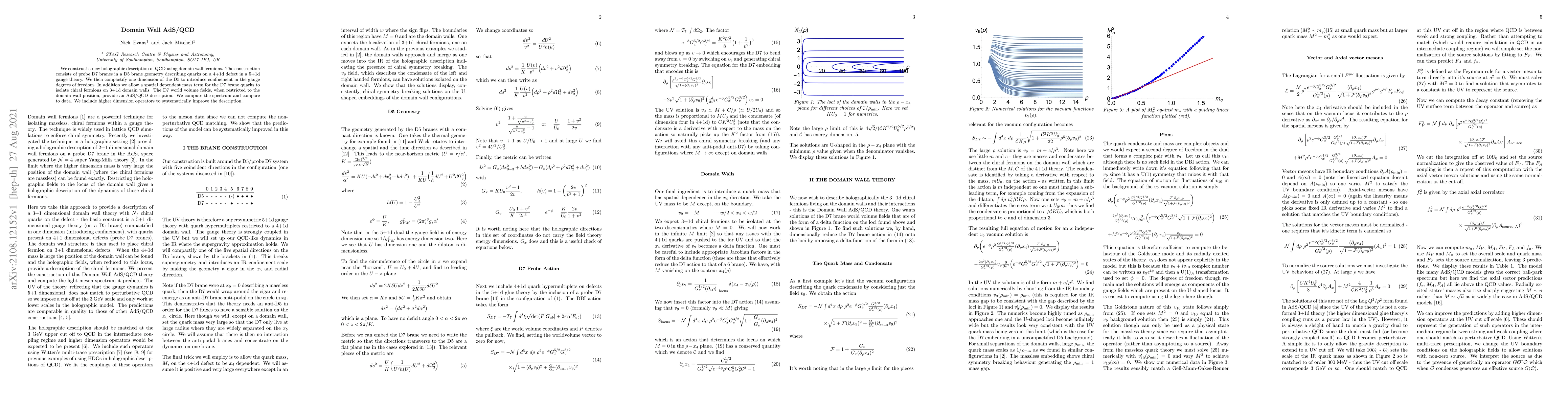 This paper constructs a holographic QCD model using domain wall fermions with probe D7 branes in a D5 brane geometry, introducing confinement and chiral fermions on 3+1d domain walls. The resulting AdS/QCD description is analyzed for its spectrum and compared to experimental data, with higher dimension operators used to refine the model.