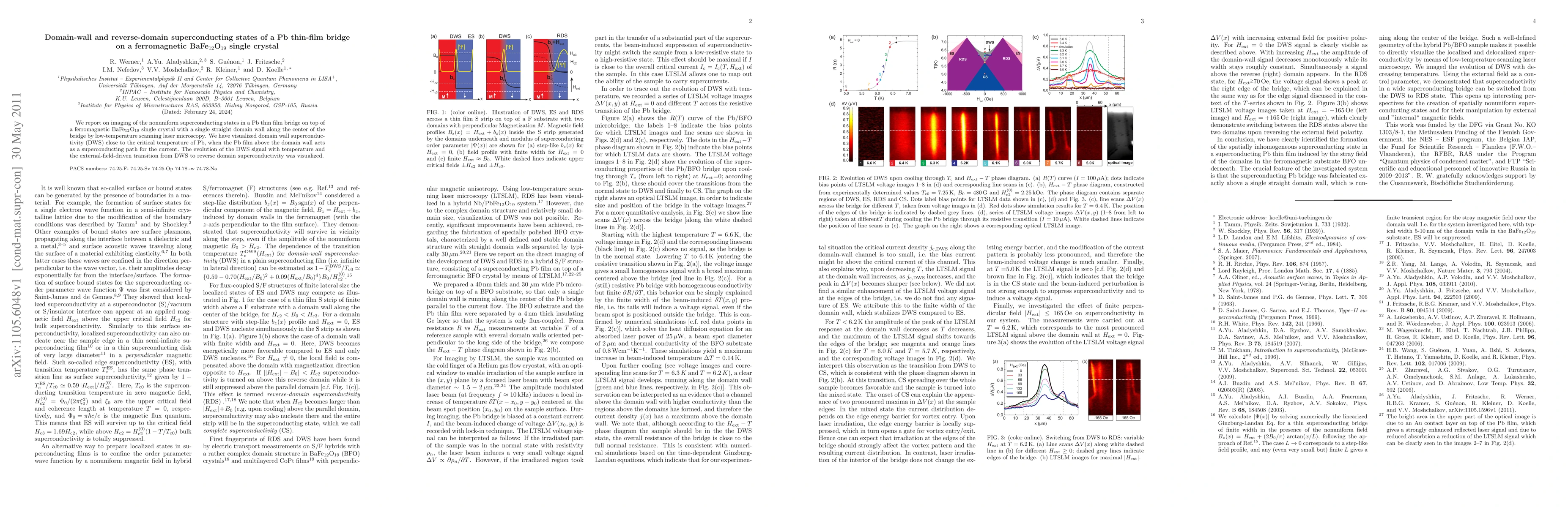 We report on imaging of the nonuniform superconducting states in a Pb thin film bridge on top of a ferromagnetic BaFe_{12}O_{19} single crystal with a single straight domain wall along the center of the bridge by low-temperature scanning laser microscopy. We have visualized domain wall superconductivity (DWS) close to the critical temperature of Pb, when the Pb film above the domain wall acts as a superconducting path for the current. The evolution of the DWS signal with temperature and the external-field-driven transition from DWS to reverse domain superconductivity was visualized.
