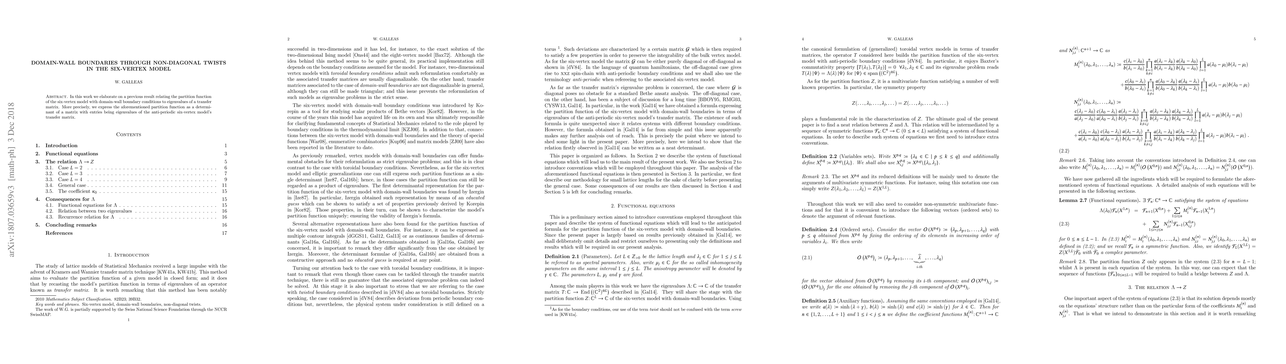 This paper connects the partition function of the six-vertex model with domain-wall boundaries to the determinant of a matrix whose entries are eigenvalues of the anti-periodic six-vertex model's transfer matrix, building on previous results.
