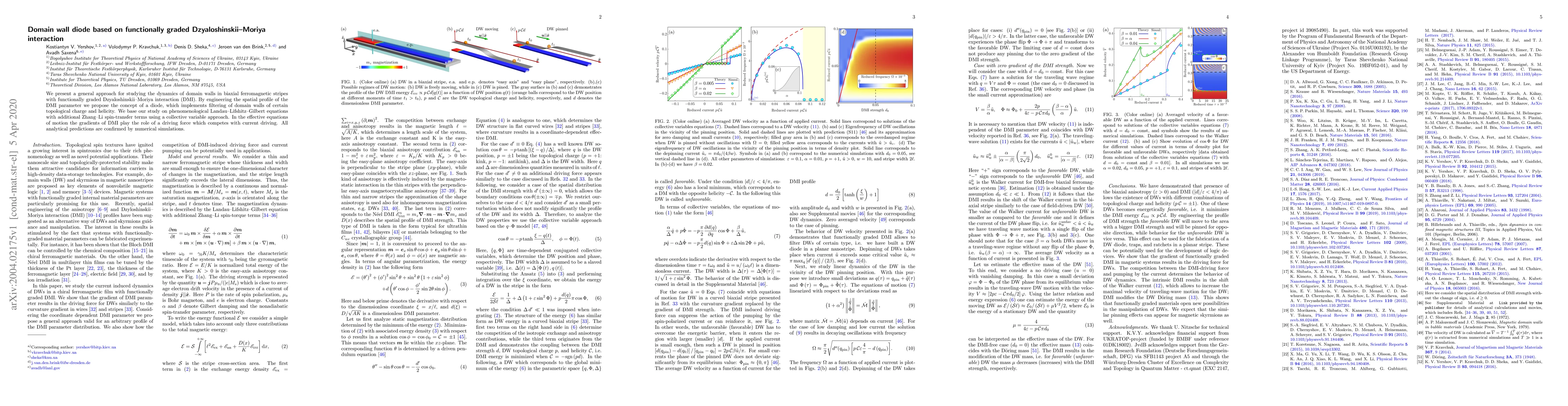 We present a general approach for studying the dynamics of domain walls in biaxial ferromagnetic stripes with functionally graded Dzyaloshinskii-Moriya interaction (DMI). By engineering the spatial profile of the DMI parameter we propose the concept of a diode, which implements filtering of domain walls of certain topological charge and helicity. We base our study on phenomenological Landau-Lifshitz-Gilbert equations with additional Zhang-Li spin-transfer terms using a collective variable approach. In the effective equations of motion the gradients of DMI play the role of a driving force which competes with current driving. All analytical predictions are confirmed by numerical simulations.