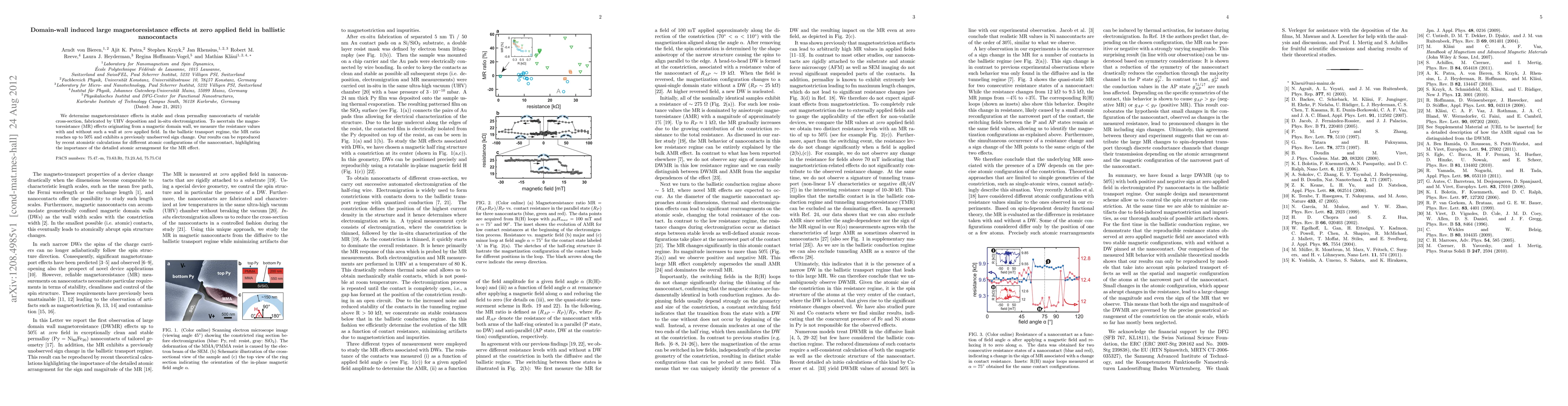 This study investigates magnetoresistance effects in permalloy nanocontacts, revealing a large MR ratio of up to 50% and an unprecedented sign change in the ballistic transport regime due to magnetic domain walls at zero applied field. The findings align with recent atomistic calculations, underscoring the significance of atomic structure in the observed MR effects.