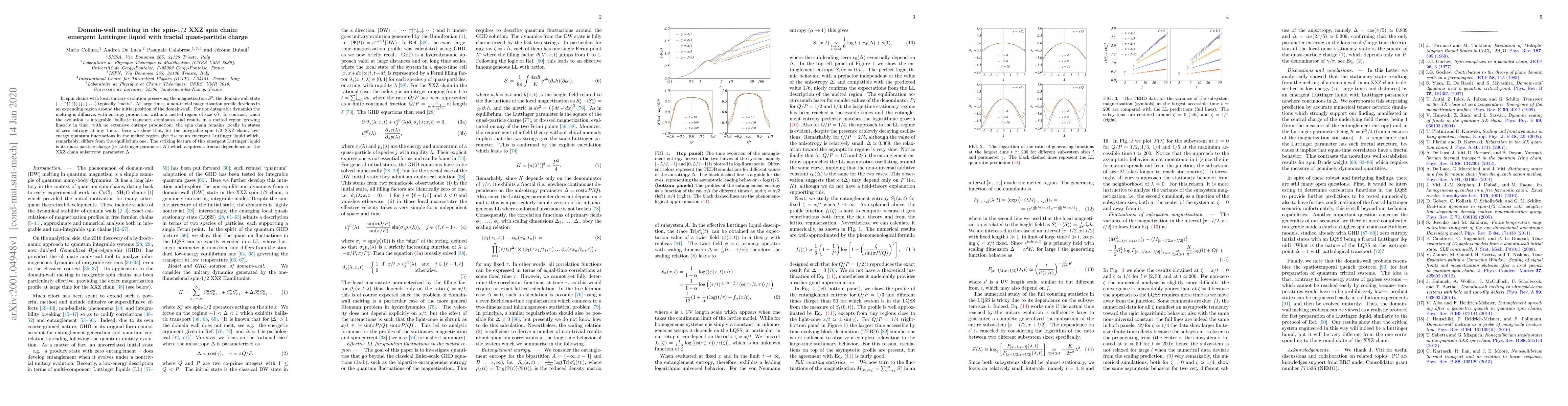 This paper investigates the melting of domain-wall states in the spin-$1/2$ XXZ spin chain, revealing an emergent Luttinger liquid with a fractal quasi-particle charge dependent on the anisotropy parameter $\Delta$. The study contrasts diffusive melting in non-integrable dynamics with ballistic transport in integrable systems.